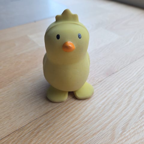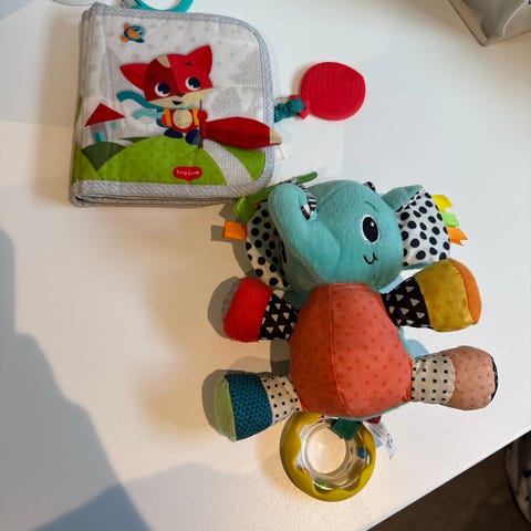 Elefant babyleke i grå farge. Laget for barn som en myk og trygg lekefigur. Ikke brukt her. Er typ lav "bjellelyd" når man rister på den.