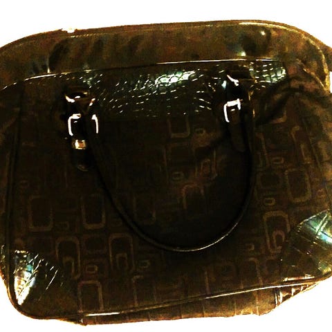 dameveske i lærestoff, hvit med vevd design. Husker og finner ikke merke. Vesken har justerbar skulderrem og glidelåslomme på innsiden. Målene er omtrent 22 cm i bredde og 15 cm i høyde. Egnet for daglig bruk og mindre eiendeler. Lite brukt her 😊