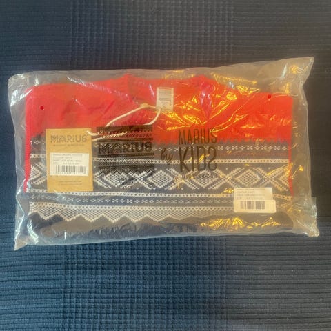 Mellomlagsdress i bambus med mariusmønster. 50% bambus og 50% bomull. Vi har vært veldig fornøyd med den som 2 lags under dressen.