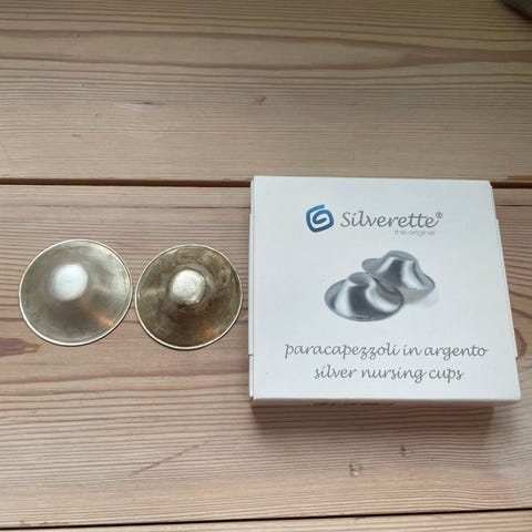 Silverette XL brystknopper laget i rustfritt stål. Rengjort og kokt før salg. Svært pent brukt.