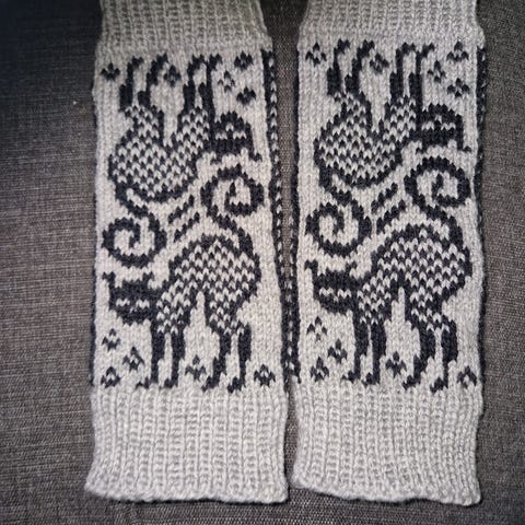 Kattegenser til barn strikket I 100 % ull. Garnetcer merinoull og klør ikke. Strikket I dyr og røykfritt hjem