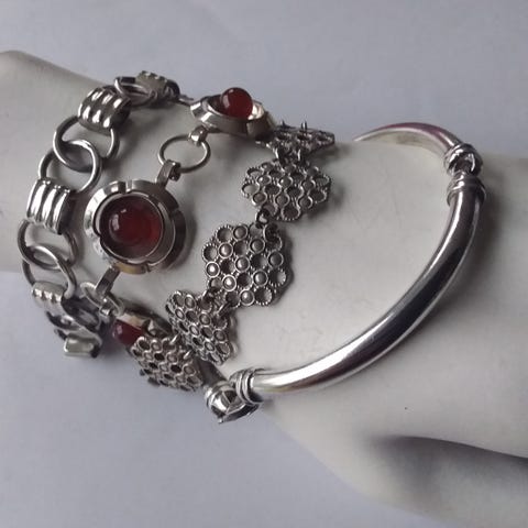 Pent brukt armbånd med tre kjeder.