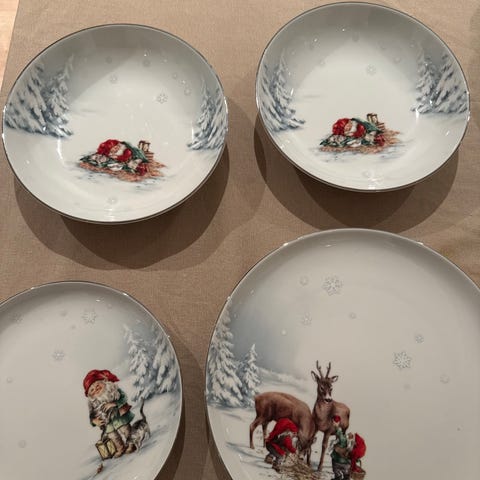 2 fat igjen....middagsfat og frokost tallerken som ny brukt 1-2 ganger Selges samlet 350,- Postfrakt 140,-