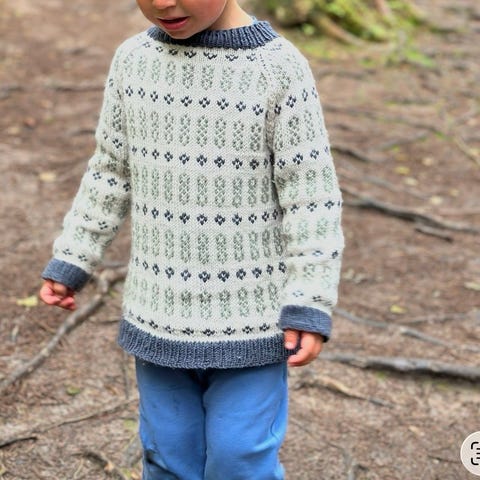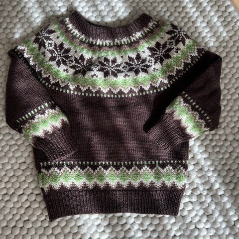 Hjennestrikket genser i ull. Vil passe 3-5åring.