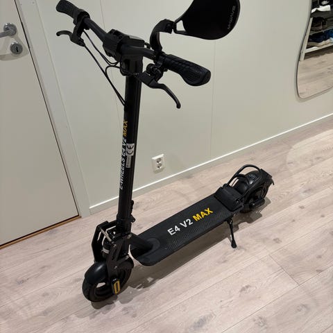 Electric Scooter E4 V2 MAX med digitalt display, baklys, og skivebremser. Egnet for voksne brukere, med robust konstruksjon og elektrisk motor for effektiv transport. Kjøpt ny 26.04.25. Lang rekkevidde. Byttet bakskjerm og løftebøyle. Den er brukt en kort periode og i god stand, vasket og klar for ny eier. Følger med brukermanual, og om ønskelig en lås. Sender ikke. Kom gjerne og se på den :)