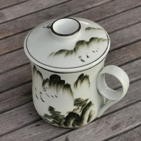Nydelig vintage kopp fra Tiongtsin China, med delikat blåblomst-mønster og klassisk form. Perfekt for deg som samler på porselen eller ønsker en unik kopp til kaffestunden.