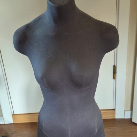 Mannekeng for dame laget i svart plastmateriale. Passer til visning av dameklær og tilbehør i butikker eller utstillinger.