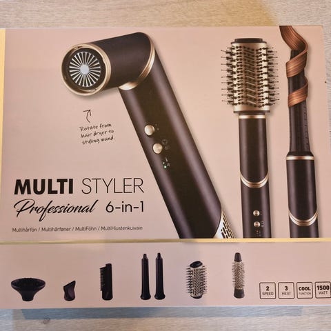 Kult Classic Style Air Styler hårstyler med rund børste. Produktet har flere børster for styling og luftstrøm for tørking og forming av hår. Ikke brukt. Garantien gjelder fortsatt.