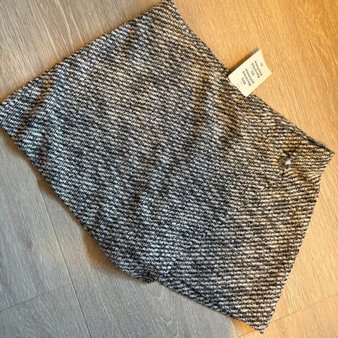 H&M skjørt i brun farge, laget av polyester. Skjørtet er i størrelse L. Ser ut som nytt. Fine detaljer oppe, faller fint. Litt semseket effekt uten at det er det. Rett under knærne, jeg er 1,72