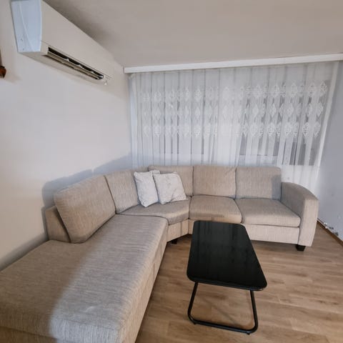 Kjøpt i 2020, pent brukt, blått stoff, ikke røyk eller husdyr. Kan deles i 3 deler.