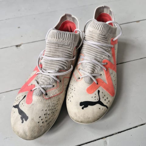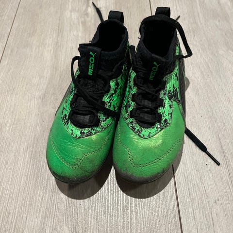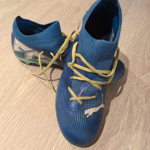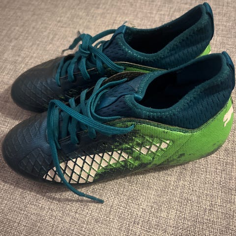 Puma fotballsko i blå farge. Skoene har en gummisåle med mønster for grep, og snøring for justerbar passform. Egnet for bruk på innendørs eller kunstgressbaner.