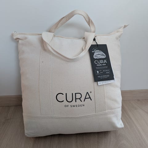 Nesten ubrukt Cura vektdyne 5 kg med hvitt bomullsdynetrekk selges.