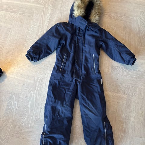 Lindex barneheldress i størrelse 110-116, laget av resirkulert polyester. Dressen har brun farge med hvite prikker og hette med dyredetaljer. Passer for både gutter og jenter.
