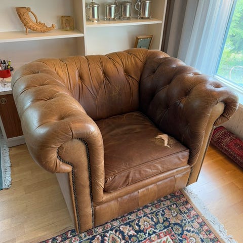Cognac farget skinn, lenestol🪑