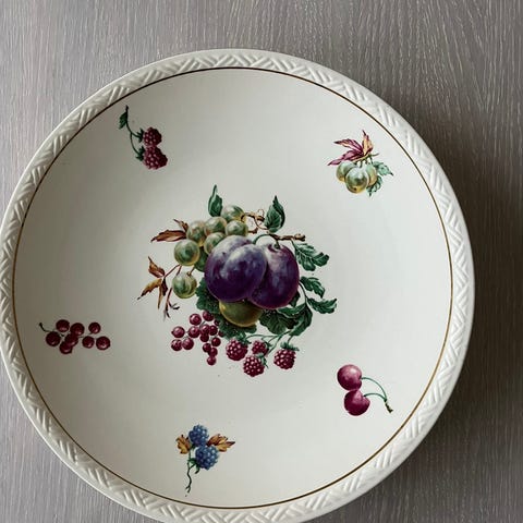 Stort fat fra Egersund Fajanse Fabrikk. Ingen Skader el. Skrammer. Nydelig. Diameter : 32,5 cm. Høyde : 3 cm. Kr. 300.-