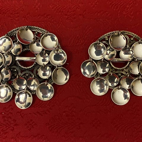 risku for salg. Gravert horn og rikule, 6 cm i diameter.