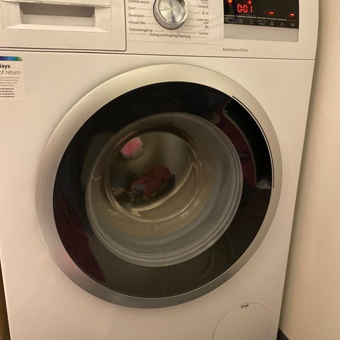 Pent brukt vaskemaskin som fungerer helt fint. Den er hel, ren og i god stand, og har flere praktiske programmer, inkludert bomull, syntetisk, ull og hurtigvask. Opptil 1200 omdreininger.