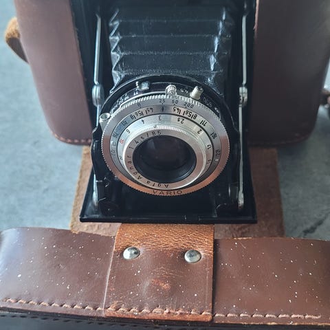 Flott gammelt kamera, Agfa Billy record 8.8, skinn etui medfølger.