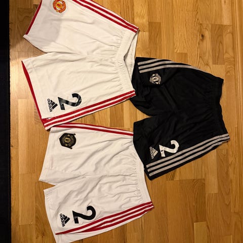 Adidas Manchester United fotballshorts i størrelse S, svart farge og rosa striper. Shortsen er laget for menn og egnet for fotball. Materialet er teknisk stoff som gir god bevegelighet og komfort under aktivitet. Lenge 47 cm.