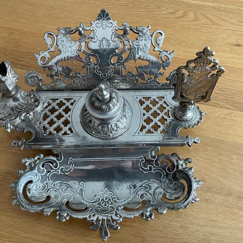 Metallet er støpejern, produsert i Tyskland. Blekkhuset i pressglass ( turbin-mønster) og er uten skader