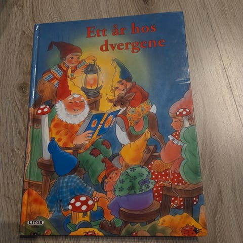 Ett år hos dvergene eventyr vakre illustrasjoner. Stor bok. Sidee er I bra stand, men bruksmerker perm, se bilder. Vakre bilder. Selges for 99 kr pluss porto.