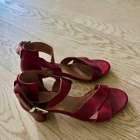 Selger et par med røde hæler i str 38. De er kjempe pene og gode å bruke. De er lite brukt, men har litt bruksmerker under skoene som ikke blir synlig ved bruk. Selges for 300kr