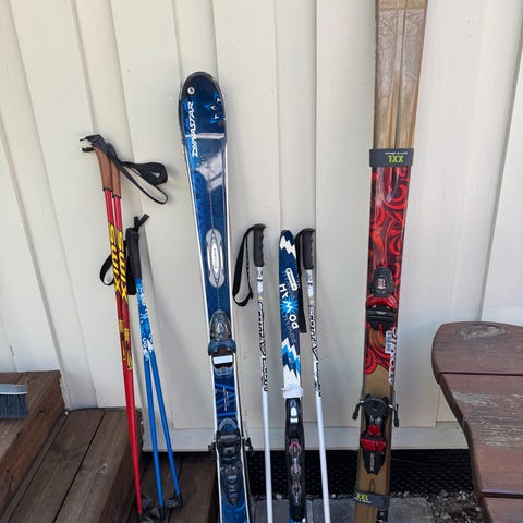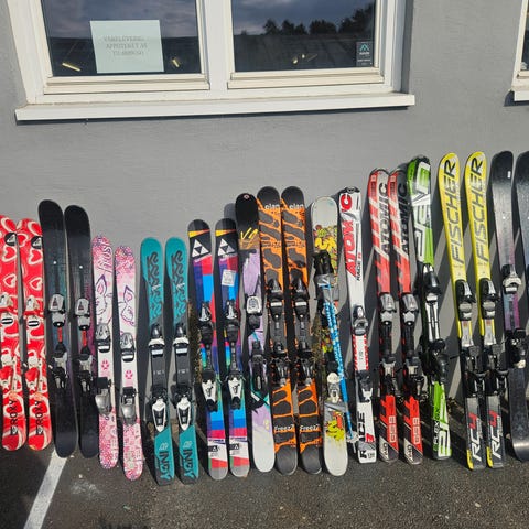 Skiene er 176 cm lange. De er ganske slitt så jeg vet ikke hvordan de er å bruke. Støvlene har størrelse 23 som skal motsvare en størrelse 38. Jeg bruker 39 og de har passet til meg. Har to par staver i forskjellige lengder, 115cm og 136cm som kan følge med.