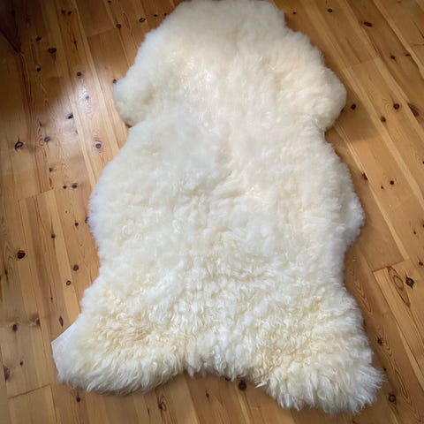Selger pent brunt ekte saueskinn. Størrelsen er ca. 60x100 cm ( se mål på bilde 3 og 4).