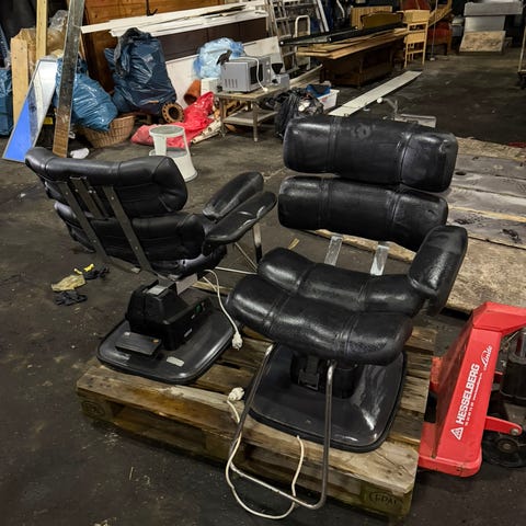 Vintage 1969 barberstoler med originalt skinntrekk fra Muster