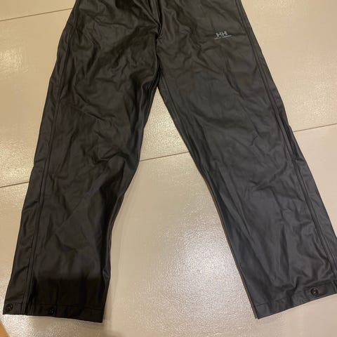Pent brukt rengbukse fra Helly Hansen. Strikken på den ene foten har blitt sydd fast for å forsterke den. I tillegg har buksen blitt trakket litt på, så den viser litt tegn til det neders på buksebeina. Det er ingen hull i buksen.