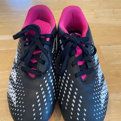 Adidas Predator fotballsko for barn i fargene rød str. 39 og gul str. 40. Skoene har knotter på undersiden for bedre grep på banen, og er laget for bruk på gress og kunstgress.