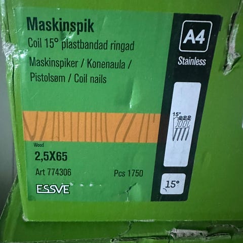 Rullbåndet spiker / Rullbandad / Coilspiker 16° – 2,5 x 64 mm – 6 esker (ubrukt)