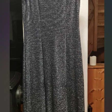 Brukt to ganger. Sort med gullmønster. Knelang. Halvlange ermer. Glidelås i ryggen. Passer 46/48 str.