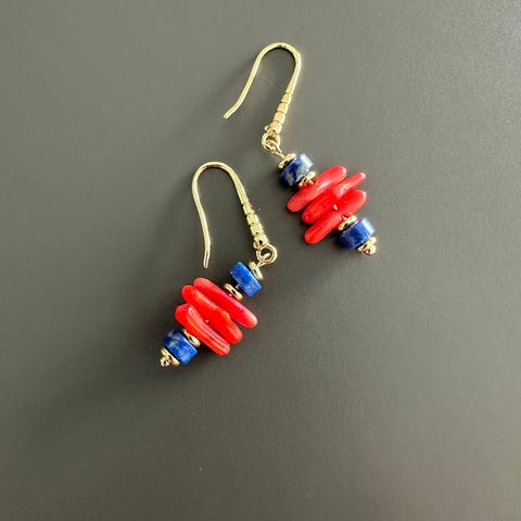 Øredobber i sølv, lapizlasuli og ferskvannsperler