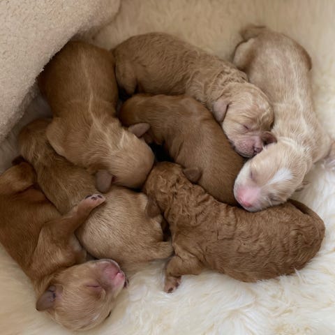 Pappa Milo er Maltipoo. Han er snill, ikke dominant og helt bjeffefri. Han har et par kull bak seg.