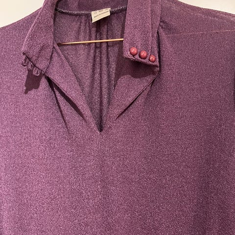 Careless glitterkjole i fargen lilla, størrelse XL. Laget av nylonmateriale. Kjolen har lange ermer og en innsvingt midje med elastisk detalj, Fin både til hverdag og fest.