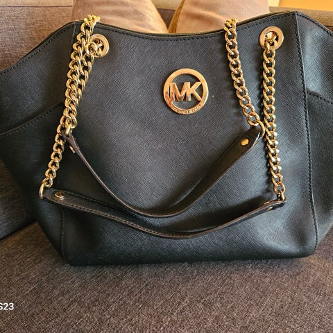 Michael Kors skulderveske i ekte lær. Har flere rom med glidelås for oppbevaring. Ingen riper.