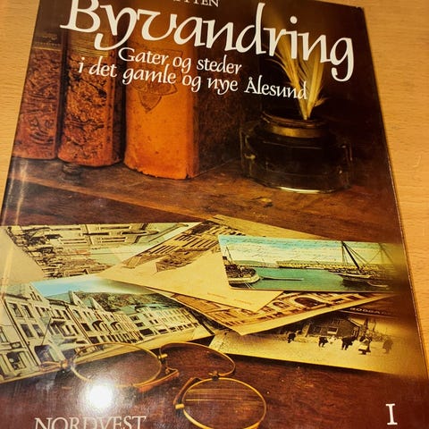 2 stk Harald Grytten Byvandring bøker, inkludert bind I og II, med temaer om gamle og nye Alesund. Bøkene inneholder tekst og bilder relatert til byvandring og lokalhistorie.