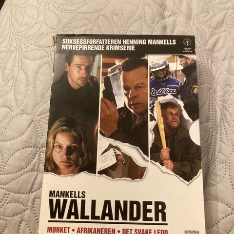 Mankells Wallander Afrikaneren DVD med norsk tekst. Inneholder filmen Afrikaneren fra serien Wallander, basert på bøkene av Henning Mankell. DVD-en leveres i plastomslag med cover og disk.