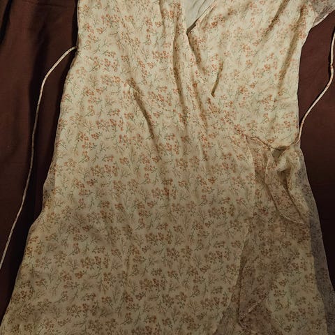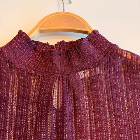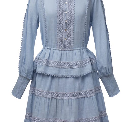 Denne kjolen er laget av delikat blonde, og har en belte i midjen for en definert silhuett. De korte ermene og den rufsede kanten gir et lekent preg, noe som gjør den ideell for ulike anledninger.