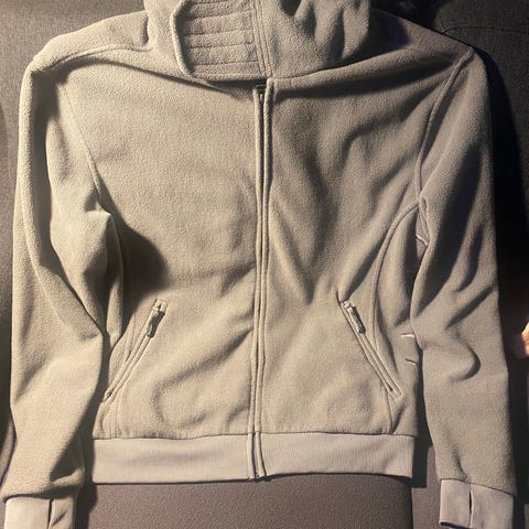 Tom Tompson hettevest i størrelse XXL. Vesten er grå og laget av 85 % bomull og 15 % polyester. Den har hette og glidelås foran, uten ermer.
