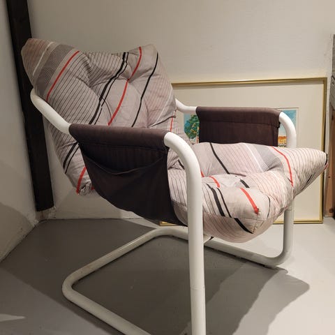 Selger en ikonisk og sjelden Moment-sofa fra IKEA, designet av den danske industridesigneren Niels Gammelgaard. Sofaen er kjent for sin karakteristiske ståltrådsramme i sølv – et signaturtrekk fra Gammelgaards modernistiske uttrykk.