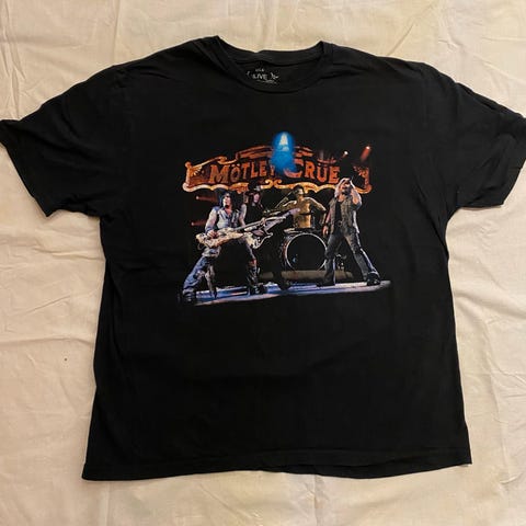Pent brukt Def Leppard / Mötley Crüe T-skjorte i størrelse Medium fra konsert turnéen i 2022 selges for kr 150,-