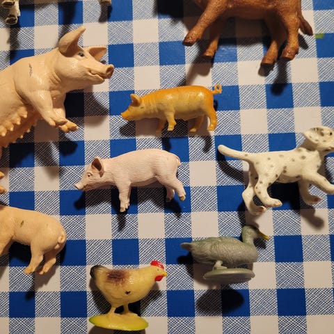 Dette er en stor samling med bare norske dyr : kuer , sauer , griser , hunder , katter , elg ++++