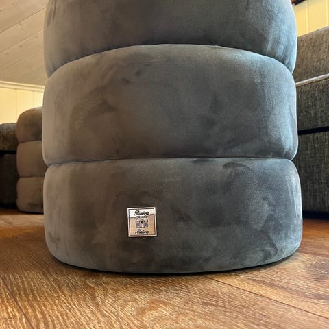 Mørke blå pall fra Rivera Maison selges 400 kr. Høyde ca 42 cm
