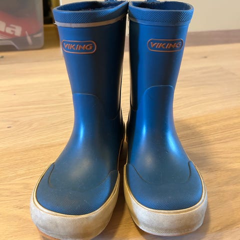 Tretorn Gränna barne gummistøvler i størrelse 35. Støvlene er unisex og har blå farge med svart stripemønster og oransje såle. Laget med gummi overdel og gummisåle, egnet for vått vær og utendørs bruk.