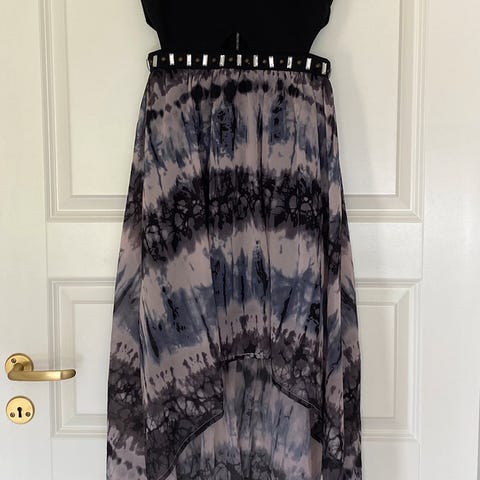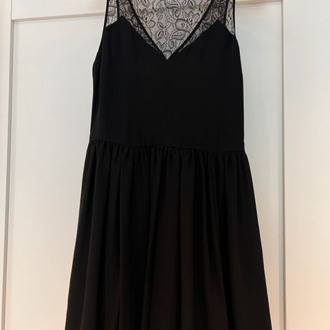 Sort kjole fra Ally i størrelse S. nydelig heklet rygg. Den er litt slitt på ene skulderen etter å ha hengt på henger, se bilde.