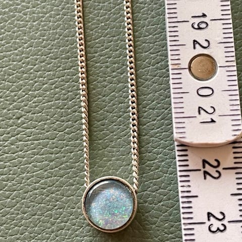 Pent og dekorativt smykkesett bestående av halskjede med stort anheng og matchende armbånd.