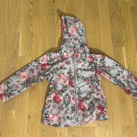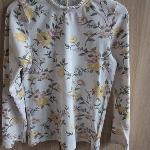 Newbie hettegenser i blomstrete design, størrelse 122/128. Pent og lite brukt.