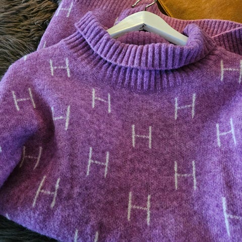Genser i ull til dame i størrelse S med mønster i brun og hvit farge.